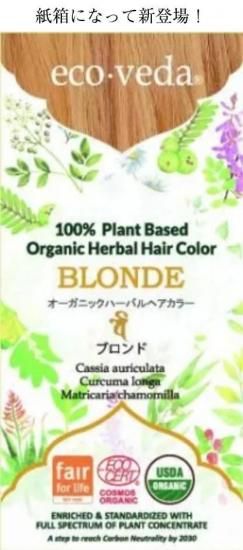【化粧品】 有機栽培により育てられたカシア、ターメリック、カモミールの葉や根や花を乾燥させたブレンドパウダーです。白髪の部分のみをブロンド系に染着させます。繰り返し使用することで色に深みが出ます。 【成分】カシアアウリクラタ葉、ウコン根、カミツレ花 *原料は有機農法で生産されたものを使用しています。 / * Fair for Lifeフェアトレード認定品 【内容量】 100g 【ご使用量の目安】 ※おおよその目安です。 ショートヘア 25g + ぬるま湯100㎖ ミディアムヘア 50g + ぬるま湯200㎖ ロングヘア 75g + ぬるま湯300㎖ エクストラロングヘア 100g + ぬるま湯400㎖ 【ご使用方法】 容器に粉を入れ、ぬるま湯を加えながらかきまぜ、髪からたれない程度のペースト状になりましたら髪全体に塗布します。色の染まり具合には個人差がありますので、放置時間は最低60分から最高90分くらいの間を目安として下さい。放置後お湯でよくすすぎ、シャンプーをご使用ください。 ※粉を溶いた直後に塗布して下さい。 【ご使用上の注意】 本品は天然植物を原料としていますが、まれにアレルギーを起こす場合があります。キク科アレルギーの方やお肌に合わないと感じられた場合は、ご使用をおやめください。染毛剤でかぶれたことのある方は特に注意してください。使用前に必ずパッチテストを行ってください。あやまって目に入った場合は、すぐに洗い流してください。衣服に付着した場合は、色が落ちないことがありますので、ご注意ください。湿気の多い場所には保管しないでください。 【パッチテストの方法】 腕の内側や耳の後ろなどの目立たないところを清潔にしてください。粉を少量ぬるま湯で溶いてください。粉を溶いたら綿棒で10円玉くらいの大きさに塗り、自然乾燥させ、そのまま触れずに2日間(48時間)おいてください。塗った直後や2日間(48時間)の間に、かゆみ、はれ等の異常を感じたら直ちに洗い落として染毛することをおやめください。塗った箇所が赤オレンジ系の色に染着しますが、日にちが経てばしだいに落ちていきます。 【保存について】 商品を開封ぜすにそのままの状態の場合、湿度の低い場所にて常温で保管していただけれぱ3年はもちます。保存期間中、開封後の場合は、湿気が入らないようにしていだだき、常温状態で約3ヶ月位を保存期間の目安としてください。また、ぬるま湯で溶いた場合は、ただちにご使用下さい。(溶いてから時間が経過すると、色が染着しにくくなります。)
